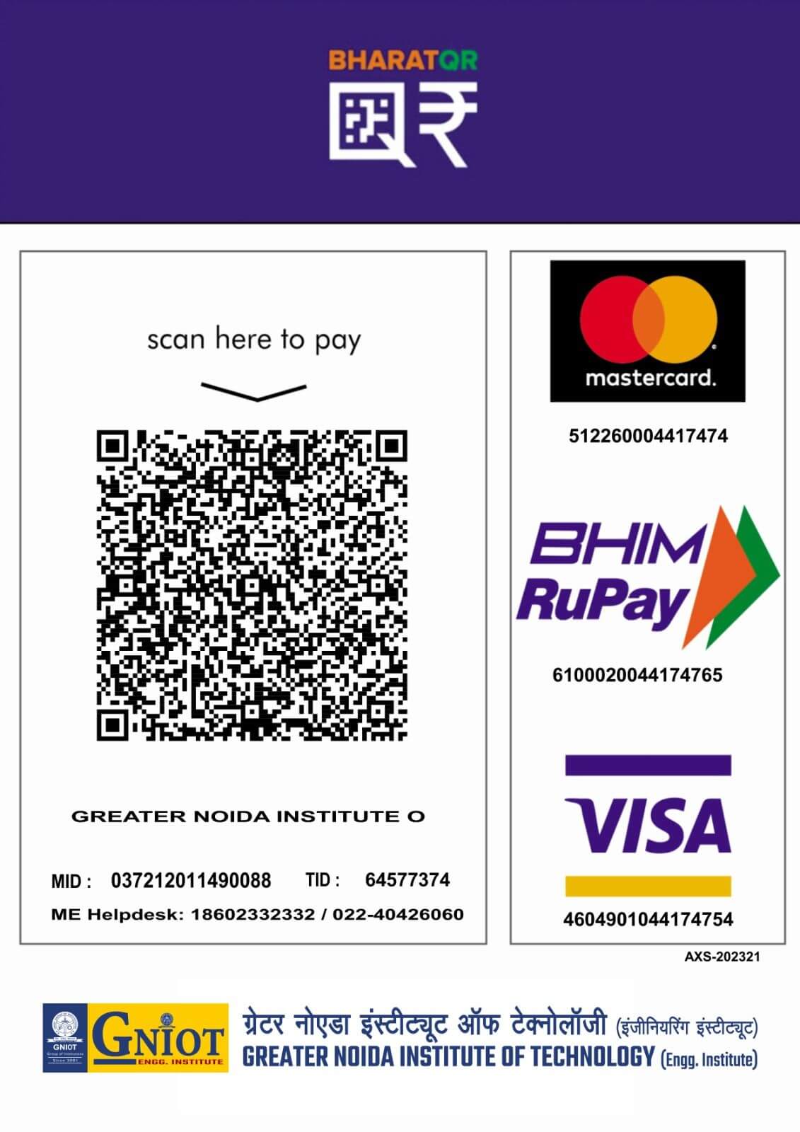 Secure Your Admission – Pay Your Course Fees Easily Online Payment Please contact us in case of any query. UNIVERSITY BANK ACCOUNT: AXIS BANK Name: Greater Noida Institute of Technology Acc No: 923020018004021 IFSC: UTIB0001149 Branch: SECTOR-51, NOIDA [UP], NOIDA, 201301